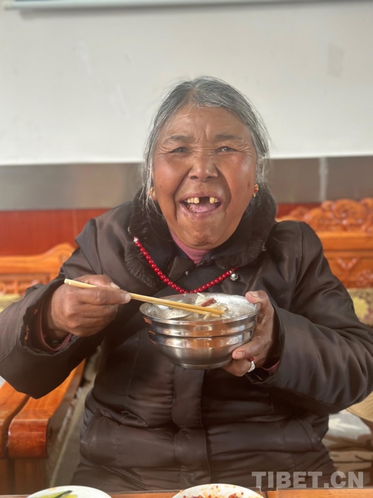 今年是廚師普布次仁參加工作的第八年,同時也是和供養(yǎng)服務中心的老人們吃古突的第八年,“每年我們都是一起吃古突、過藏歷新年,大家都特別開心,在供養(yǎng)服務中心也能夠感受到家的溫暖,這幾年我們也一直盡全力為老人提供優(yōu)質(zhì)、貼心的服務,希望新的一年他們能夠享受到更加舒適、溫馨的晚年生活?!逼詹即稳首孕艥M滿地說。