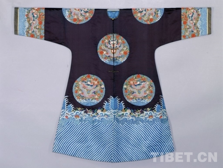 圖為石青色緞平金彩繡緝米珠八團(tuán)龍袷褂 圖片來源:故宮博物院