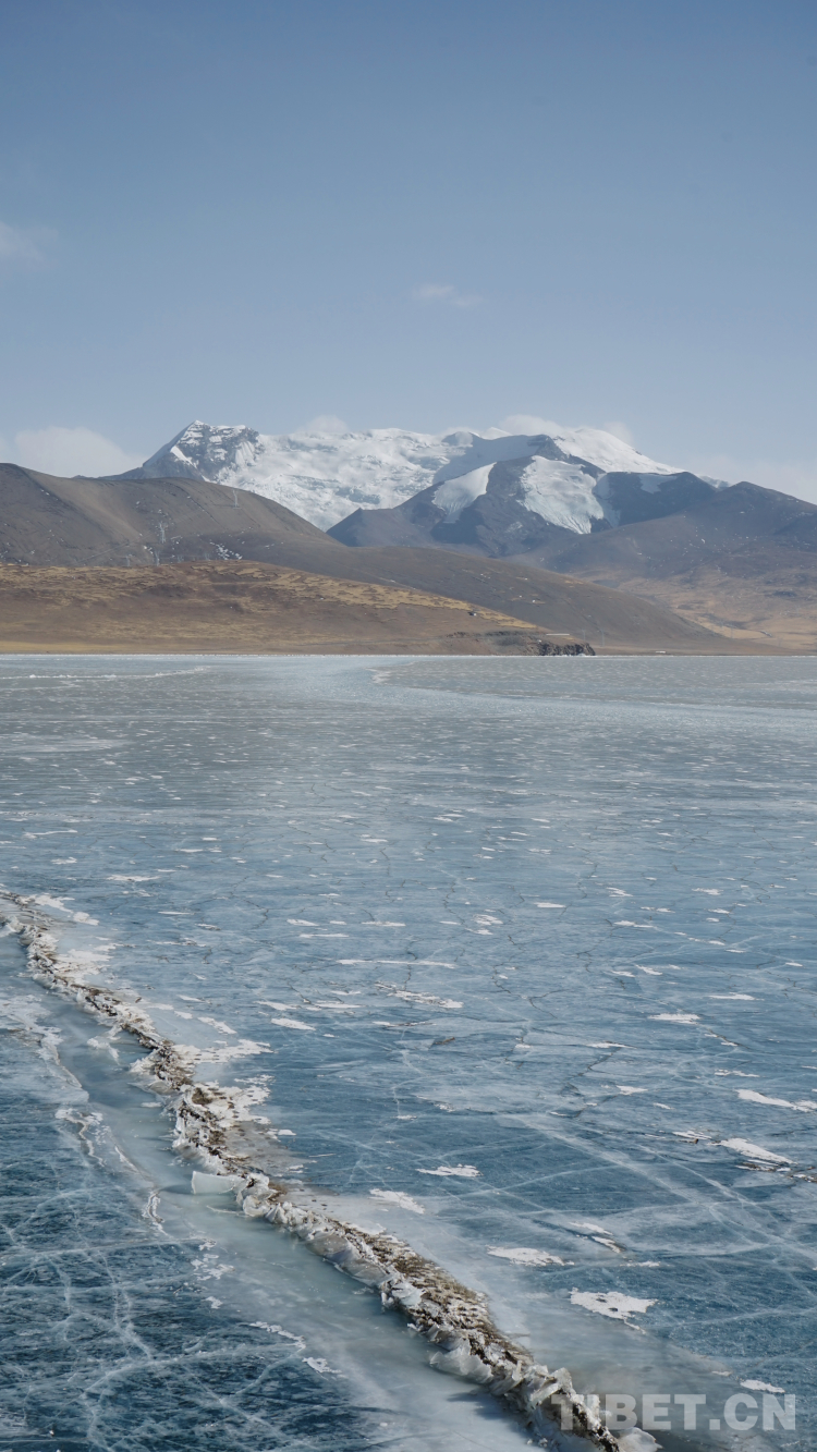 又見羊卓雍措是在冬日。與夏天不同,冬天的西藏常見大風(fēng)。云一少,羊湖的藍(lán)愈加冷冽深邃。在去普瑪江塘鄉(xiāng)采訪的途中,還路過了普莫雍錯。與全年幾乎不結(jié)冰的羊湖不同,普莫雍錯已經(jīng)結(jié)為通透的藍(lán)冰。湖的邊緣像是在打浪的一瞬間凍結(jié)起來的,一層一層,走在上面稍不留神就會被湖面的大風(fēng)吹倒。
