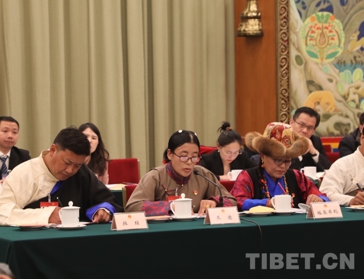 圖為其德在十四屆全國人大二次會議西藏代表團(tuán)開放團(tuán)組會議上發(fā)言 攝影:桑吉
