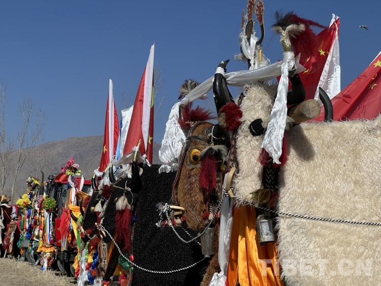 當(dāng)天上午,茶巴朗村的村民們穿著極具民族特色的節(jié)日盛裝,男人們開(kāi)著裝扮一新的拖拉機(jī),婦女們手捧吉祥切瑪,帶上青稞美酒、酥油糌粑、瓜果“卡塞”以及各類供品等來(lái)到田間地頭,迎接一年一度的“春耕節(jié)”。
