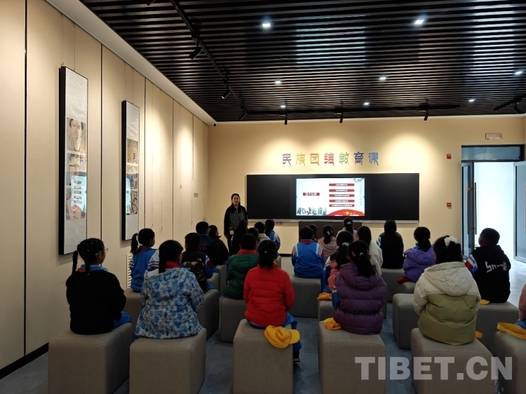 圖為開館儀式當(dāng)天,當(dāng)?shù)貙W(xué)生在展館內(nèi)上民族團結(jié)教育課