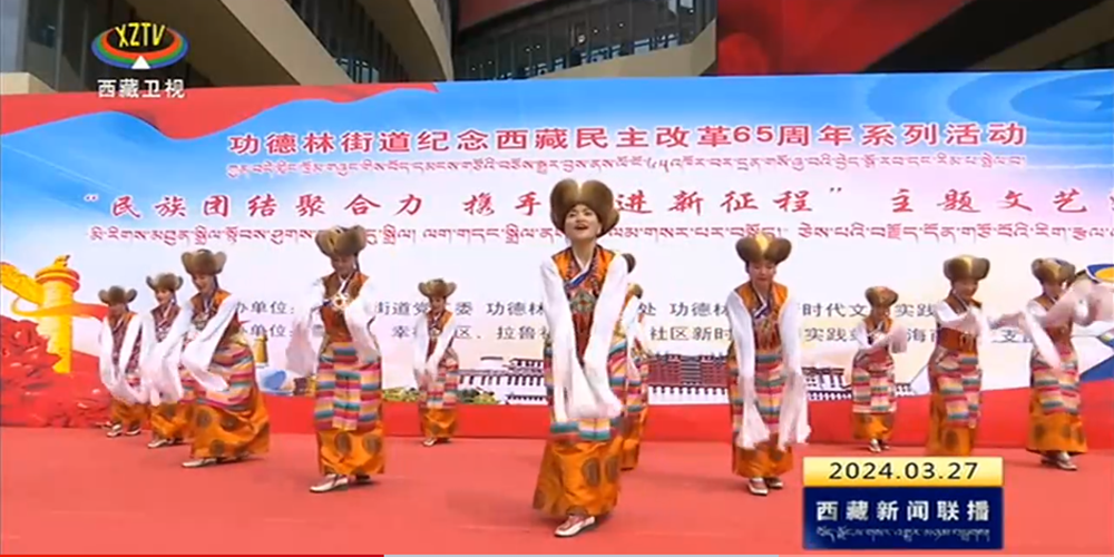 連日來,在西藏各地市,人們通過豐富多彩的活動紀念西藏民主改革65周年。拉薩市功德林街道開展的“民族團結聚合力 攜手奮進新征程”文藝匯演活動,吸引眾多市民游客駐足觀看。居民用歌聲凝聚力量,用舞姿傳遞真情,展示著新西藏各族群眾美好的幸福生活。來自西藏自治區(qū)人民醫(yī)院退休干部倉木拉說;“我們跳的是《藏家兒女心向黨》,表達著百萬翻身農奴對黨的熱愛,感謝共產黨讓我們有了今天的幸福生活。在黨和國家的領導下,相信我們西藏的明天更美好。”