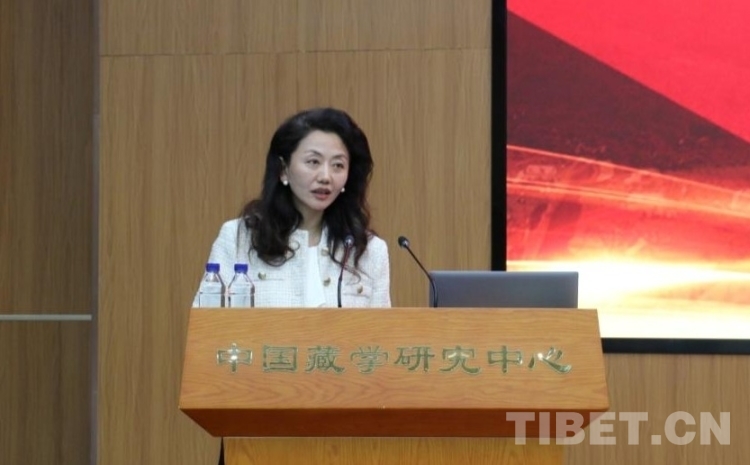 圖為邊巴拉姆在紀(jì)念西藏民主改革65周年學(xué)術(shù)研討會(huì)上 攝影:王妍丹