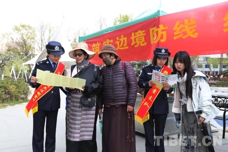 圖為西藏邊檢總站執(zhí)法調(diào)查支隊(duì)民警在西藏拉薩向群眾普及國家安全知識