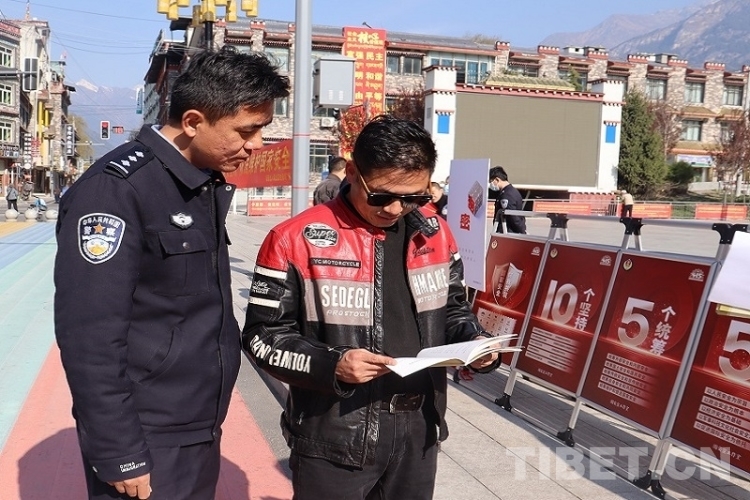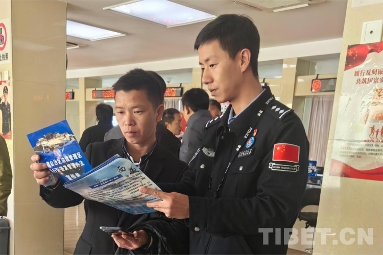 圖為西藏邊檢總站執(zhí)法調(diào)查支隊(duì)辦證室民警在西藏拉薩向群眾普及邊境管理區(qū)通行證管理辦法