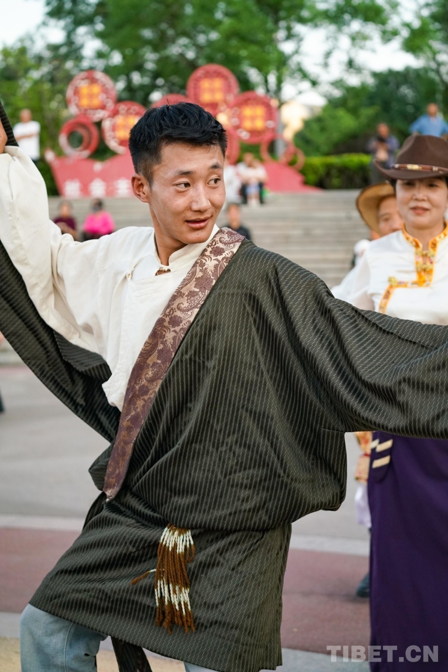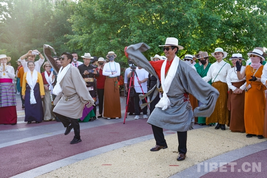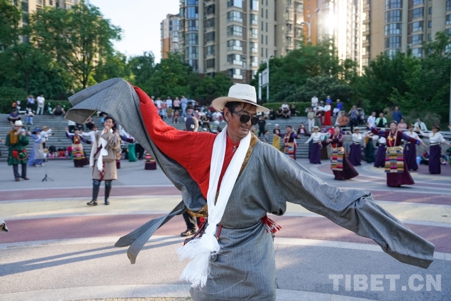 圖為來自西藏拉薩的藏舞推廣人沙多正在領(lǐng)舞 攝影:陳浩力