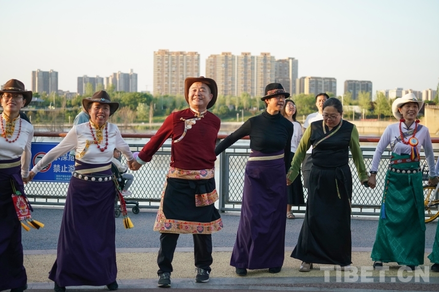 中國西藏網(wǎng)訊 近日,由同心圓傳統(tǒng)藏舞會堂舉辦的傳統(tǒng)藏舞推廣展演活動在西安浐灞半島舉辦,來自西藏、青海、四川等地的多位藏舞推廣傳承人、民間音樂創(chuàng)作人與藏舞愛好者齊聚西安,他們身著藏族傳統(tǒng)服飾,邊唱邊跳,《歡迎你們到來》《吉祥的哈達》《放牧歌》……一曲接著一曲,大家在歌聲和歡呼聲中感受著藏族文化的無限魅力?。ㄖ袊鞑鼐W(wǎng) 記者/呂靜 陳浩力)