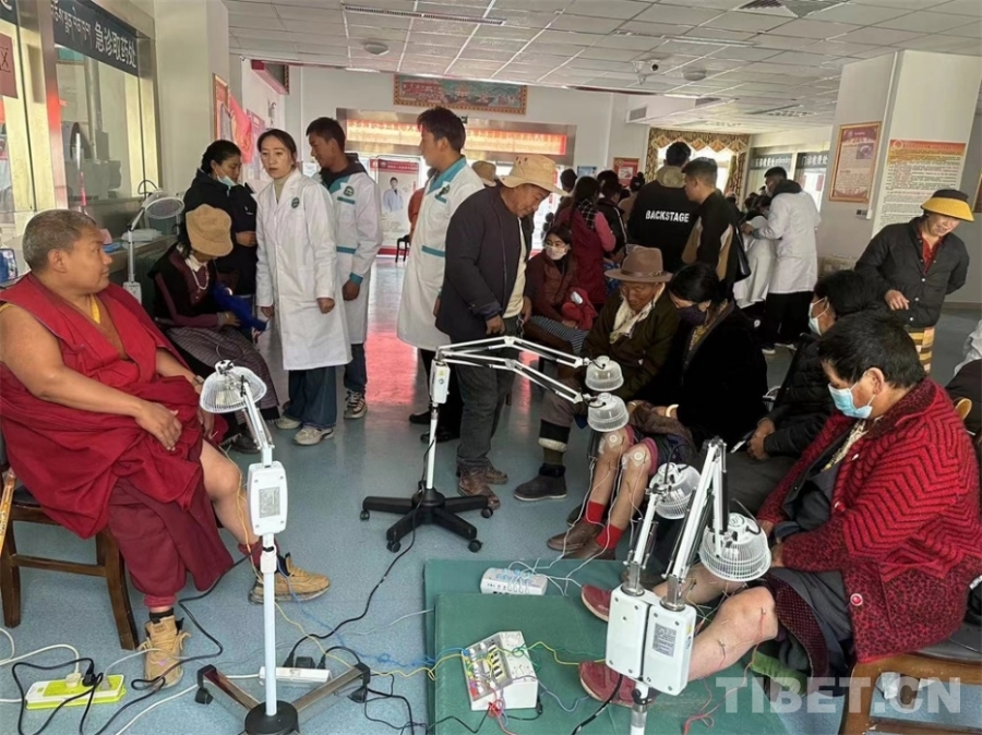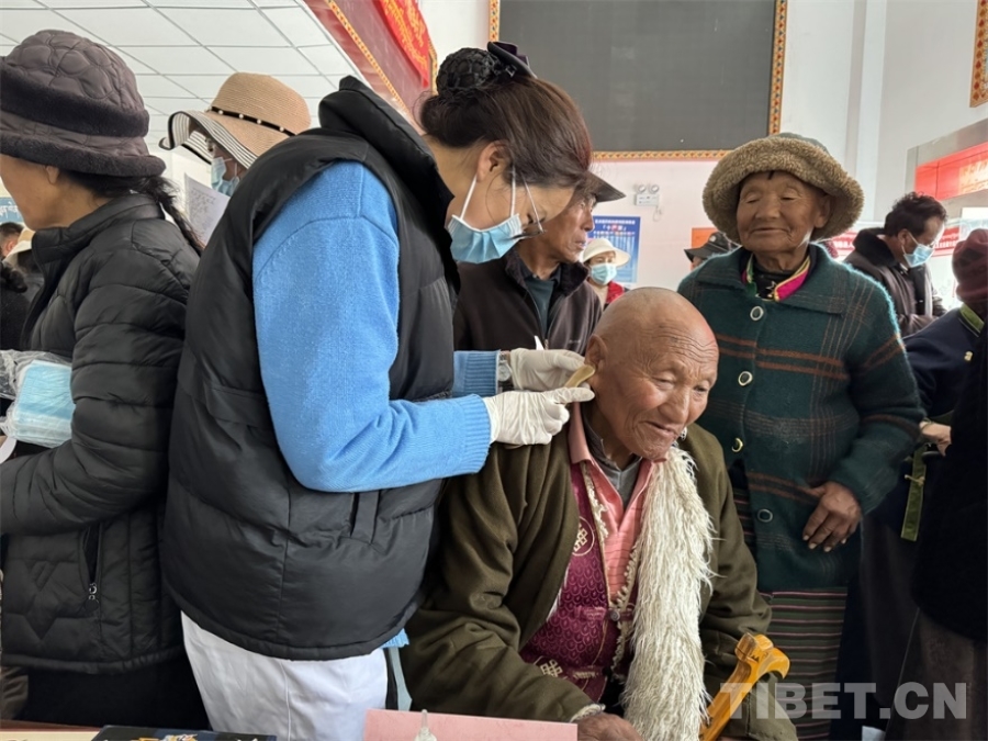 圖為洛隆縣藏醫(yī)院及人民醫(yī)院的醫(yī)療團(tuán)隊(duì)在現(xiàn)場(chǎng)開(kāi)展平衡火罐、艾灸等中醫(yī)診療服務(wù) 供圖:洛隆縣藏醫(yī)院