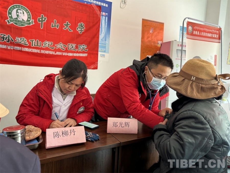 來(lái)自廣州中山大學(xué)孫逸仙紀(jì)念醫(yī)院中醫(yī)科的陳柳丹在義診現(xiàn)場(chǎng)為患者開(kāi)展了中醫(yī)治療,“今天我們開(kāi)展的中醫(yī)診療包括穴位貼的貼敷、艾灸治療、平衡火罐之類的,我們想讓洛隆的更多群眾了解急救的知識(shí),了解中藏醫(yī)療法?!?/p>
