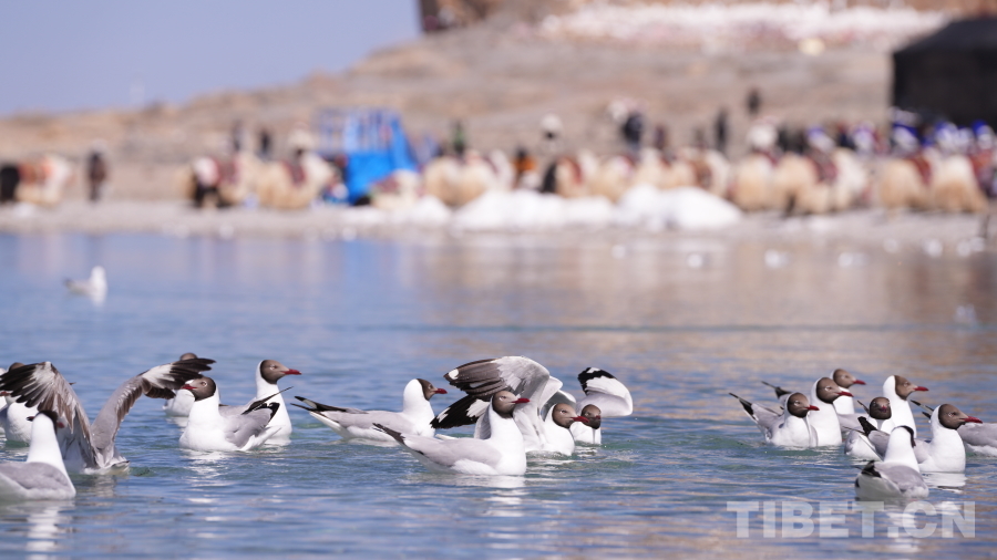 圖為在納木錯(cuò)嬉戲的棕頭鷗 攝影:德吉卓瑪。