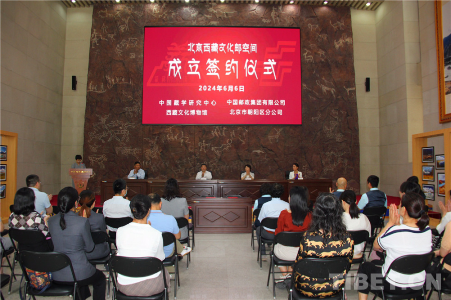 中國西藏網(wǎng)訊 6月6日,中國藏學研究中心西藏文化博物館與中國郵政集團有限公司北京市朝陽區(qū)分公司聯(lián)合建立“北京西藏文化郵空間”合作簽約儀式在西藏文化博物館(下文簡稱“博物館”)舉行。中國藏學研究中心(下文簡稱“藏研中心”)副總干事李德成、中國郵政集團有限公司北京市朝陽區(qū)分公司總經(jīng)理梁洪濤、藏研中心相關部門負責人出席活動。