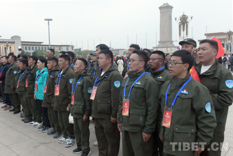 當(dāng)日凌晨,懷著萬分激動(dòng)的心情,來自西藏羌塘、珠穆朗瑪峰國家級(jí)自然保護(hù)區(qū)的野保員一大早就來到了天安門廣場,等候國旗冉冉升起的那一刻。