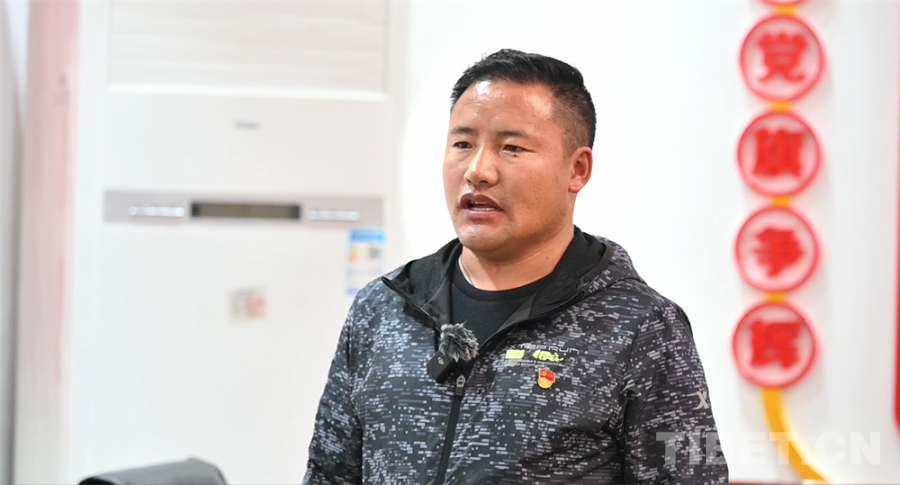 圖為昌都市洛隆縣第二小學教師斯郎曲扎接受采訪