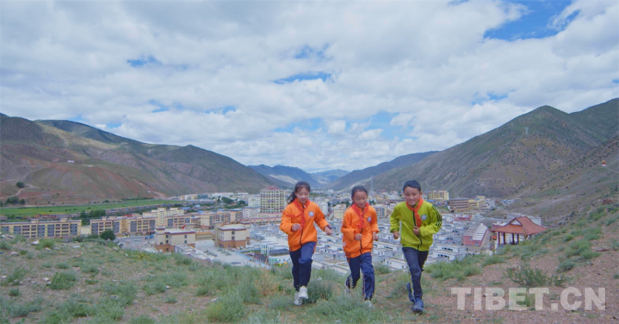 圖為昌都市洛隆縣的小學生在學校的后山玩耍
