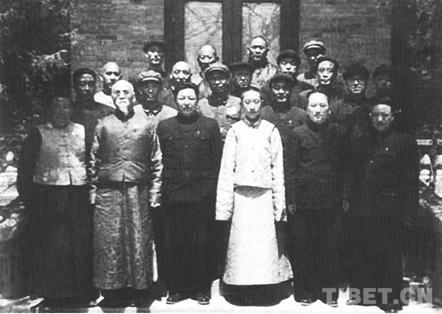 圖為習(xí)仲勛代表西北軍政委員會(huì)前來(lái)送行,期間和十世班禪、喜饒嘉措,青海省委、省政府領(lǐng)導(dǎo)及各界人士一起合影 程頤工供圖