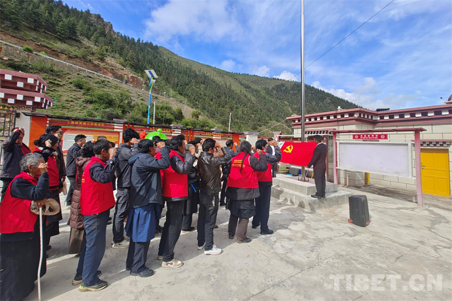 圖為洛隆縣中亦鄉(xiāng)嘴村的黨員重溫入黨誓詞的現(xiàn)場(chǎng)