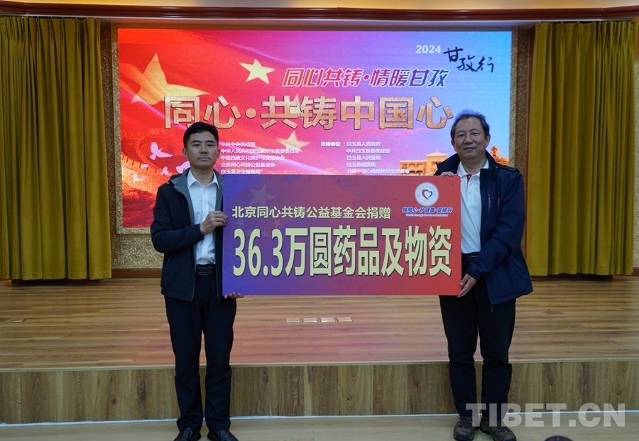 會(huì)議開(kāi)始,與會(huì)人員一同觀看了“同心共鑄·情暖甘孜——‘同心·共鑄中國(guó)心’2024甘孜行”活動(dòng)直播。隨后,白玉縣委書(shū)記劉堰,專家團(tuán)團(tuán)長(zhǎng)、清華長(zhǎng)庚醫(yī)院神經(jīng)外科主任醫(yī)師王貴懷分別致辭?,F(xiàn)場(chǎng)還舉行了捐贈(zèng)儀式和授旗儀式。