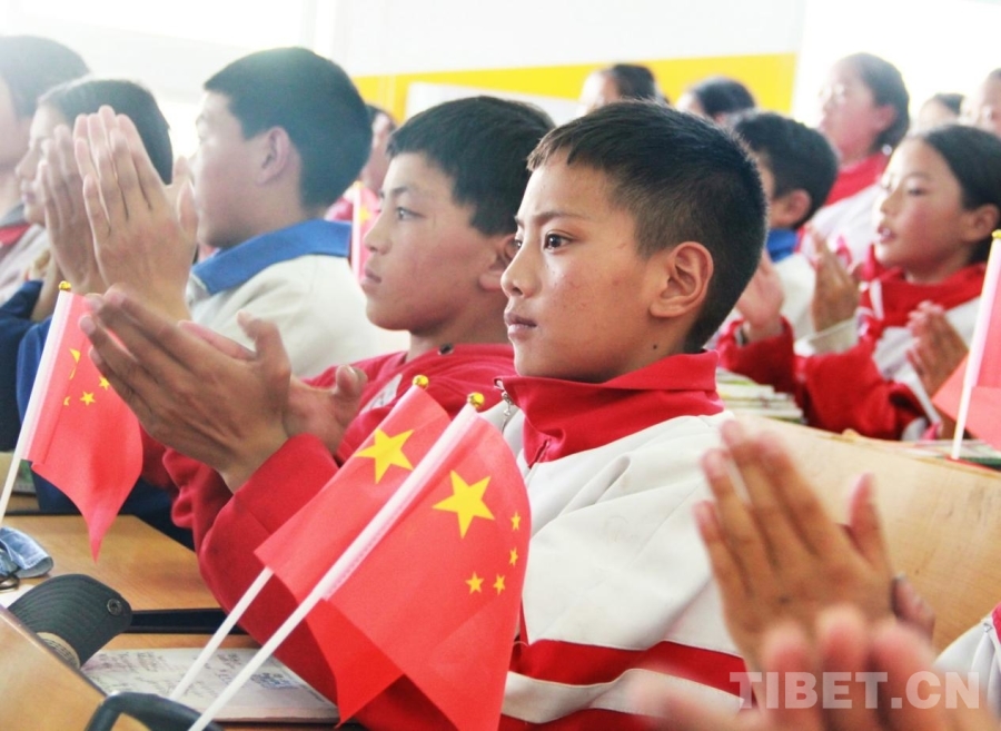 圖為四川省甘孜州石渠縣第二完全小學學生代表以熱烈的掌聲歡迎醫(yī)療專家們的到來 攝影:劉莉