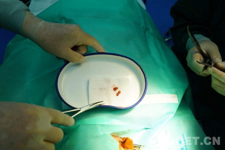 當(dāng)天上午,專家團(tuán)成員清華長(zhǎng)庚醫(yī)院神經(jīng)中心主任王貴懷和北京天壇醫(yī)院原神經(jīng)外科主任魏希發(fā)在義診過(guò)程中,篩查出一位脖頸處皮下有一塊長(zhǎng)度約為三厘米不明異物的女童,當(dāng)即便通過(guò)“同心·共鑄中國(guó)心”組委會(huì)與當(dāng)?shù)亟y(tǒng)戰(zhàn)部門、衛(wèi)健部門溝通,決定在當(dāng)天下午,在白玉縣人民醫(yī)院為孩子做手術(shù)切除。