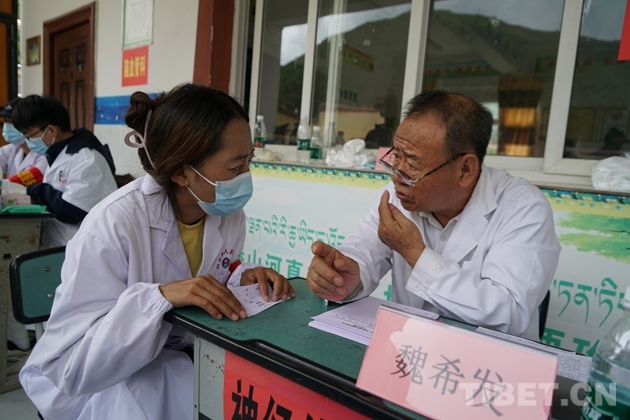在協(xié)助義診過(guò)程中,四郎曲珍聽到很多老百姓表示醫(yī)生們不遠(yuǎn)千里從北京過(guò)來(lái),不僅辛苦為大家問診,還免費(fèi)送藥,他們心里充滿了欣慰和感激??吹结t(yī)療專家們的盡心竭力和百姓們滿滿的獲得感,她對(duì)于這次活動(dòng)的意義,也有很深的感受?!拔矣X得同心這樣的活動(dòng)非常好。我們當(dāng)?shù)蒯t(yī)療條件有限,又因?yàn)榻煌ú荒敲捶奖?,老百姓看病很困難。有了這次活動(dòng),大家不需要大老遠(yuǎn)去找專家,也減輕了路上交通食宿等經(jīng)濟(jì)負(fù)擔(dān)。不僅如此,老師還可以一對(duì)一地指導(dǎo)我們當(dāng)?shù)氐尼t(yī)護(hù)人員,幫助我們提升醫(yī)療技能,以后可以更好地為老百姓服務(wù)。”