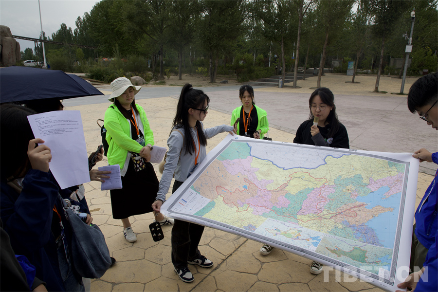 圖為青海省自然教育協(xié)會的老師給香港青少年講解黃河生態(tài)方面的知識 攝影:桑吉