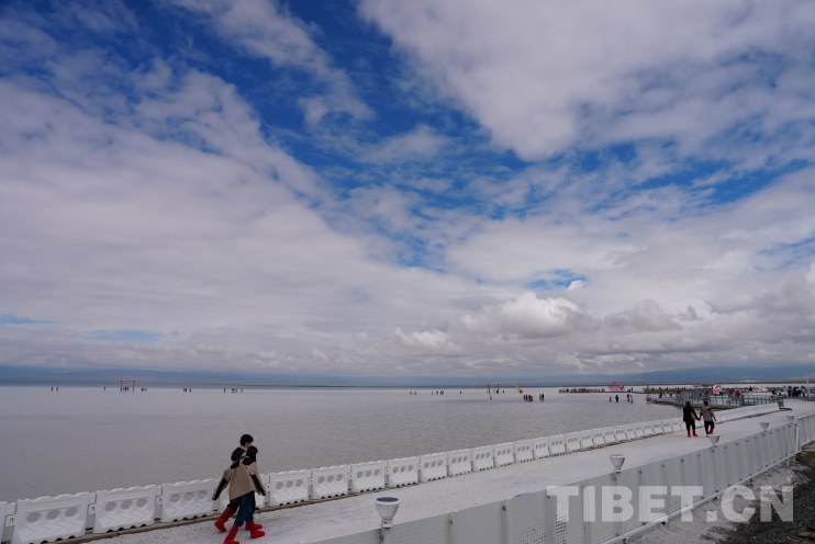 圖為藍天下的茶卡鹽湖。攝影:趙振宇