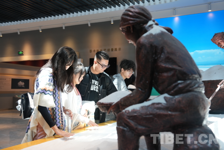 “茶卡”是藏語,意即鹽池。鹽是我們生活中最為常見之物,但直到來到茶卡鹽湖文化館,這些青少年們才發(fā)現(xiàn)自己所知有限。他們這才了解到,鹽這一日常餐桌上的尋常之物,其背后竟藏著一個多彩而豐富的世界。除我們熟悉的海鹽、湖鹽之外,巖鹽的堅硬、井鹽的深邃、竹鹽的清新,都以各異的姿態(tài)和色彩展現(xiàn)著自然界的奇妙多樣性。鹽的妙用也遠不止調味,還有清潔、消腫等多種功效。何莉莉聯(lián)想到自己生物課上所學:“鹽里含有的多種氨基酸和微量元素,都是我們身體所需,對人類真的很重要。”