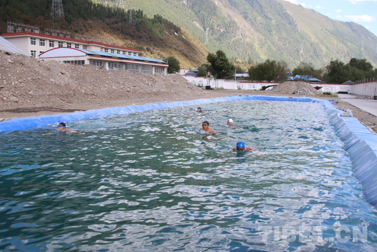 圖為波密縣森林消防中隊(duì)指戰(zhàn)員利用自建簡易泳池開展游泳訓(xùn)練