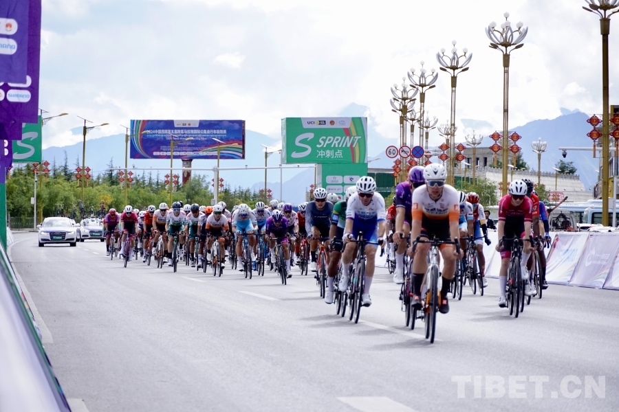 汽笛齊鳴,百車競發(fā)。賽道上,自行車選手們?nèi)珉x弦之箭沖出起點(diǎn),為團(tuán)隊榮譽(yù)不斷突破個人極限。拉薩段以西藏博物館為起點(diǎn),圍繞拉薩河,途經(jīng)金珠東路、迎親橋、連心橋。在十圈的激烈趕超下,來自成都洲際隊的RIKUNOV Petr獲得該賽段第一名。