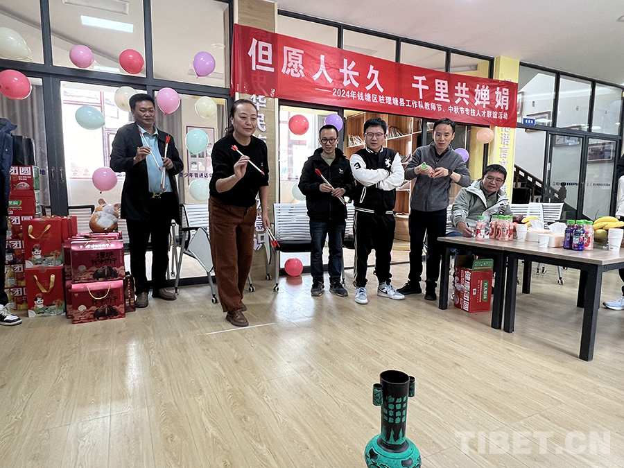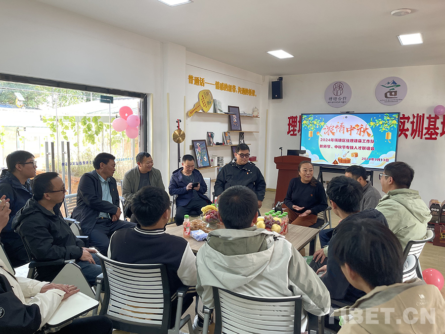 中國西藏網(wǎng)訊 9月13日,為慶祝中秋佳節(jié)和第四十個教師節(jié),浙江省杭州市錢塘區(qū)駐四川省甘孜藏族自治州理塘縣工作隊全體專技人才在理塘縣青少年普通話實訓基地歡聚一堂,共話團圓。