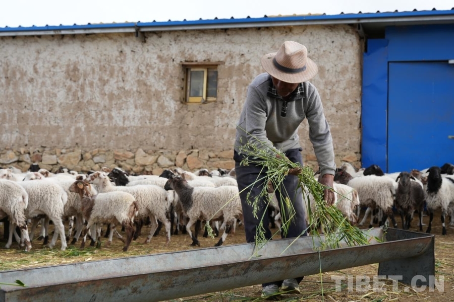 圖為正在為短期育肥羔羊添加飼料的多朗 攝影:邊子捷
