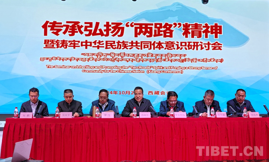 中國西藏網(wǎng)訊 10月24日,傳承弘揚(yáng)“兩路”精神暨鑄牢中華民族共同體意識(shí)研討會(huì)在西藏自治區(qū)拉薩市開幕。此次研討會(huì)由中國西藏信息中心、西藏延安精神研究會(huì)主辦,西藏自治區(qū)社會(huì)科學(xué)院、西藏技師學(xué)院協(xié)辦。來自西藏自治區(qū)黨委、西藏社科院、中國藏學(xué)研究中心、西藏大學(xué)、青海民族大學(xué)等單位的相關(guān)負(fù)責(zé)人、專家學(xué)者及西藏技師學(xué)院師生300余人參加了開幕式。(中國西藏網(wǎng) 記者/王茜 陳浩力 巫姍燕 蘭周加)