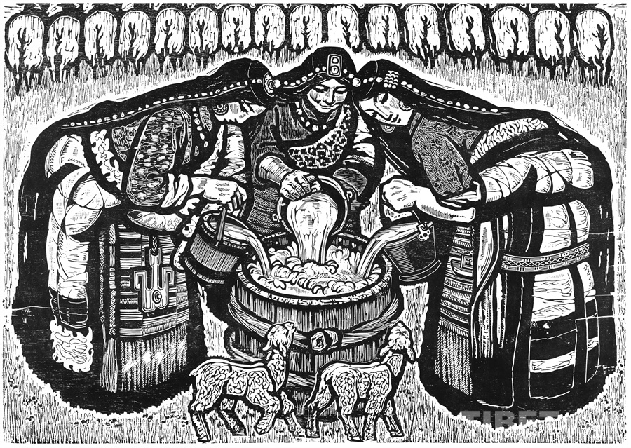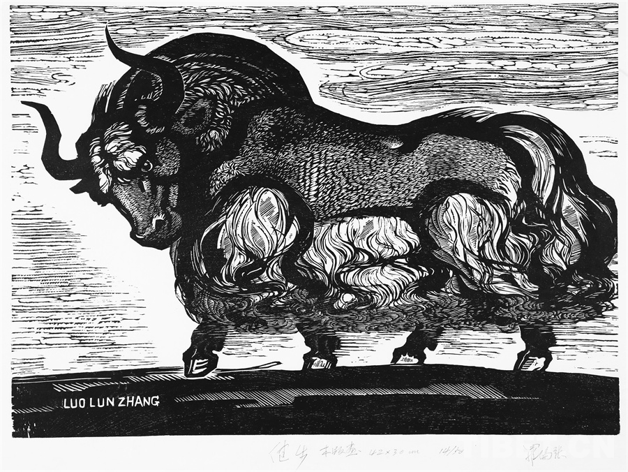 如果非要說我在版畫技法上有什么創(chuàng)新,參照西藏匠人刻經(jīng)文,在石頭上刻出來然后印出來也許就算。這不是一般石版畫概念,那叫石印,平版印刷;我這是凹版印刷??唐饋砗苜M(fèi)勁,我也不管費(fèi)不費(fèi)勁。我有一批這樣的石刻作品。綜合版作品手法較多,我通常分別在石板和木板上刻,然后套起來印。如果搞學(xué)術(shù)交流,也許值得一談。至于說到創(chuàng)新,第一我不認(rèn)為我有什么創(chuàng)新,第二我不認(rèn)為在藝術(shù)上、在美術(shù)上能夠輕易談創(chuàng)新這個(gè)詞。還有第三個(gè)觀點(diǎn):不需要?jiǎng)?chuàng)新。很簡單,你先把傳統(tǒng)學(xué)到手再說。既是傳統(tǒng),就有它的存在理由,否則早就夭折了,還傳什么統(tǒng)呢?傳,而且統(tǒng)啊!統(tǒng)是什么意思?基調(diào)是它統(tǒng)一起來的。先把傳統(tǒng)學(xué)到手,爐火純青了,神來之筆出現(xiàn)了,才有可能有所創(chuàng)造?;A(chǔ)是重要的。