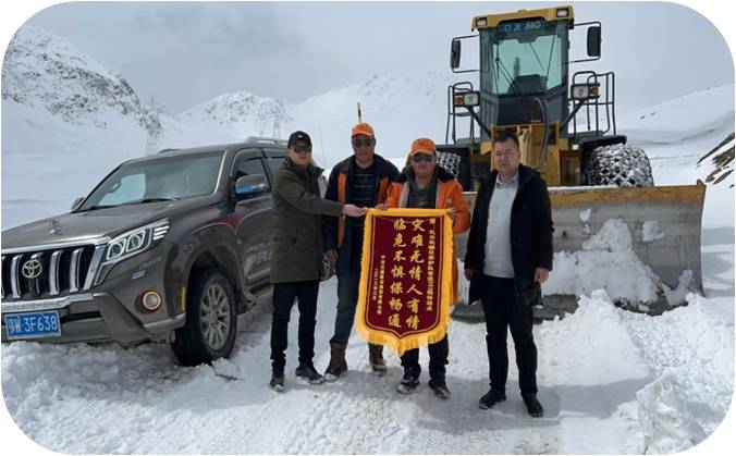 隨著川配項(xiàng)目的進(jìn)駐,我們負(fù)責(zé)管養(yǎng)的S303線,過往車輛70%為川配項(xiàng)目物資運(yùn)輸車輛。2023年3月1日,中冶交通建設(shè)集團(tuán)有限公司翻越果扎拉山,將一面寫著“災(zāi)難無情人有情,臨危不懼保暢通”的錦旗送到了我們4名保通員手中。他們說,每每經(jīng)過果扎拉山,白茫茫一片公路,其中閃現(xiàn)著橘色的身影,既讓他們心安,又讓他們心疼,更讓他們佩服。來西藏前,他們只是聽說過“兩路”精神、老西藏精神,進(jìn)入施工后,才懂得那橘色的身影就是“兩路”精神的化身。