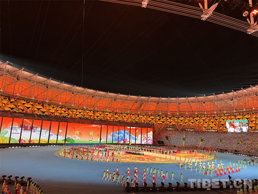 圖為西藏自治區(qū)代表團(tuán)在開(kāi)幕式上入場(chǎng) 攝影:蘇洋