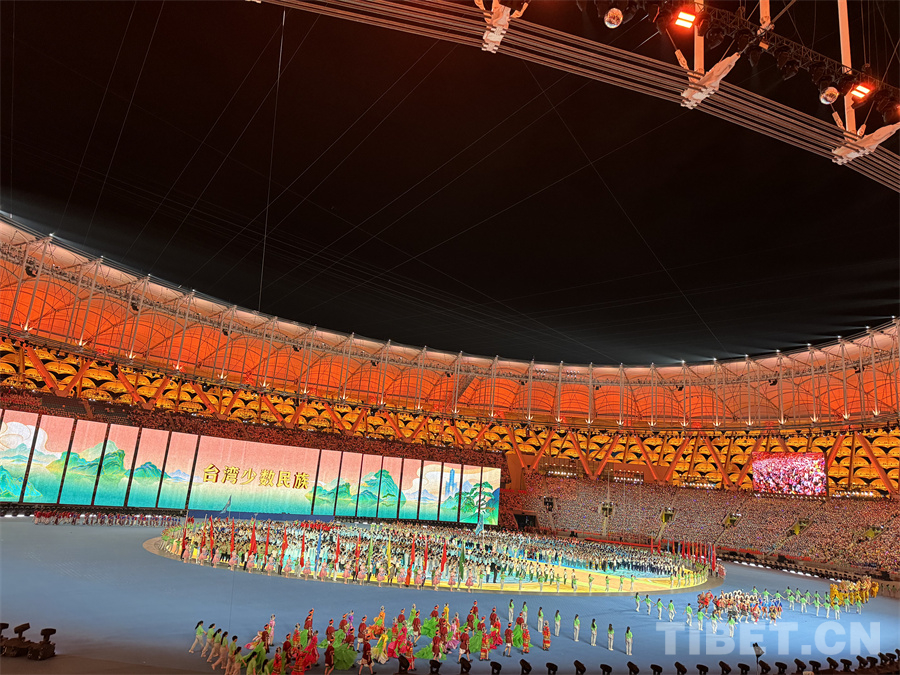 圖為臺(tái)灣少數(shù)民族代表團(tuán)在開(kāi)幕式上入場(chǎng) 攝影:蘇洋