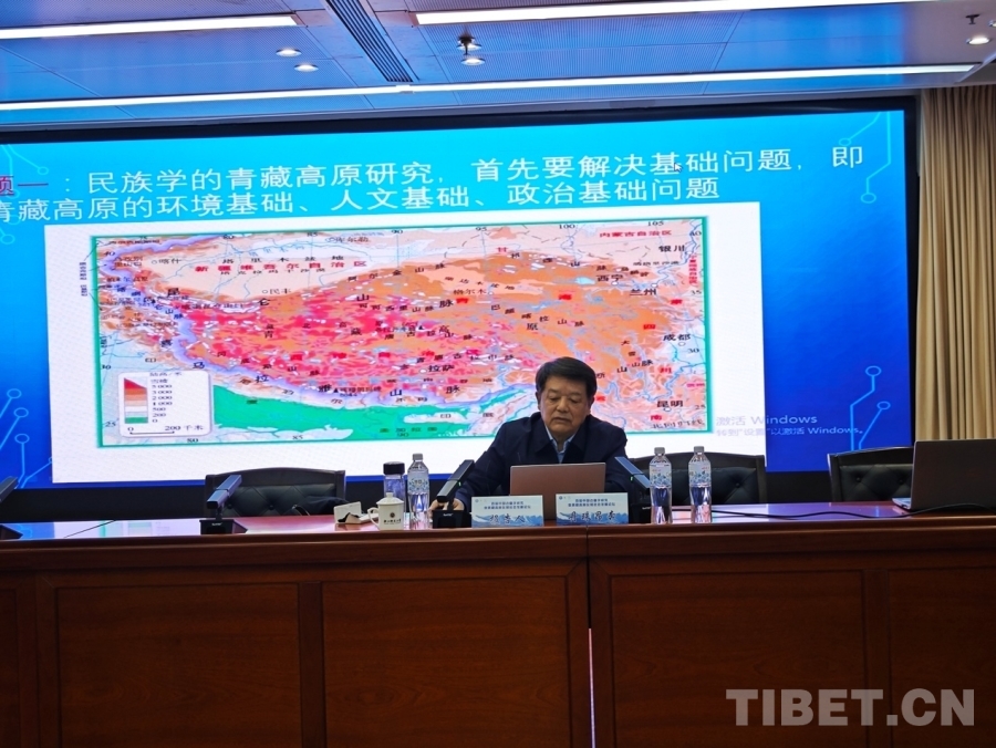 圖為國家民委原副主任、全國人大民族委員會原副主任、中央民族大學(xué)教授丹珠昂奔發(fā)言 攝影:蘭周加