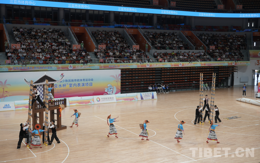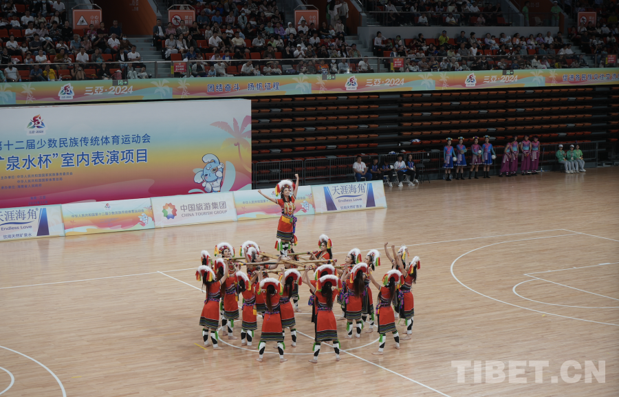 中國西藏網訊 11月24日,第十二屆全國少數民族傳統(tǒng)體育運動會表演項目(室內)在海南省三亞市體育中心體育館舉行。(中國西藏網 記者/蘇洋)