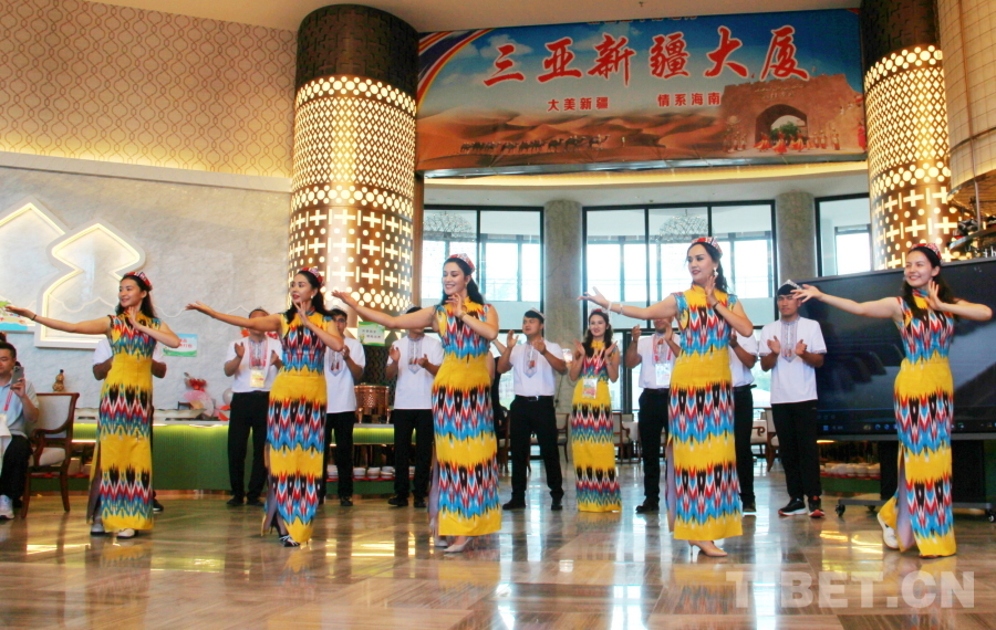 圖為新疆代表團在駐地海南三亞新疆大廈精心準備聯(lián)誼活動 攝影:劉莉