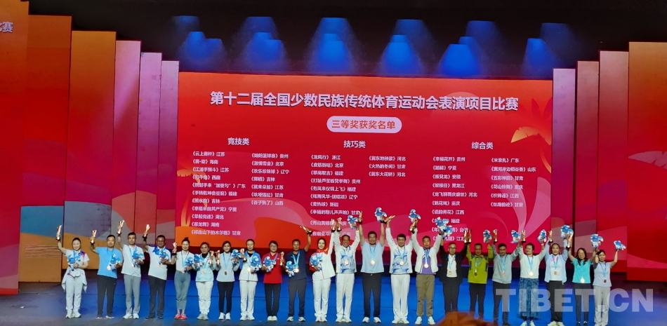圖為第十二屆全國少數(shù)民族傳統(tǒng)體育運動會表演項目頒獎晚會現(xiàn)場 西藏自治區(qū)體育局供圖