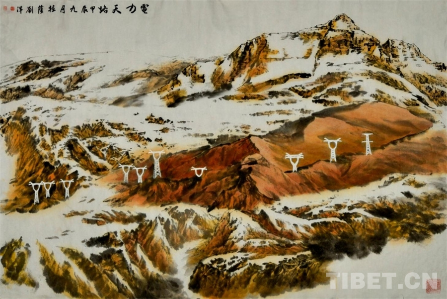 記者:路在腳下,筆隨路走。您的作品中不乏公路、鐵路、橋梁、機場等西藏現(xiàn)代化交通元素,創(chuàng)作足跡也遍布西藏七市地。如何理解以道路為代表的西藏交通變遷帶給西藏人民的變化?