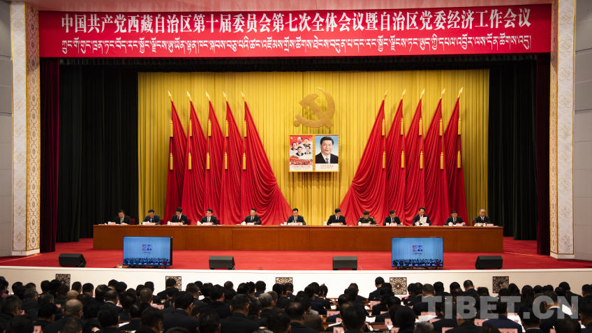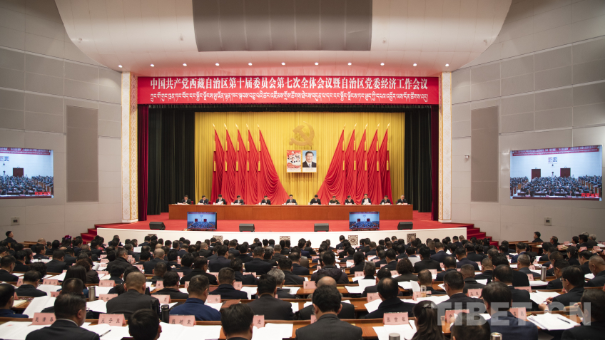 圖為中國共產(chǎn)黨西藏自治區(qū)第十屆委員會第七次全體會議暨自治區(qū)黨委經(jīng)濟工作會議現(xiàn)場 攝影:趙振宇