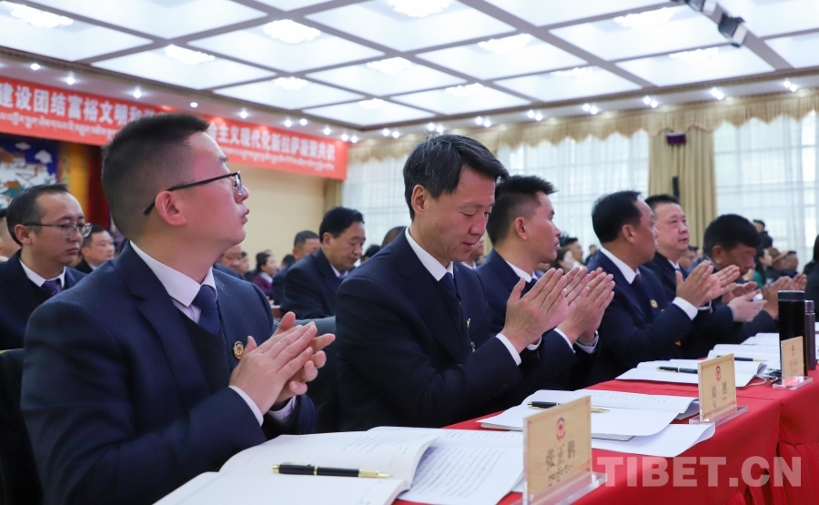 拉薩市政協(xié)主席江擁洛追代表政協(xié)第十二屆拉薩市委員會(huì)常務(wù)委員會(huì)向大會(huì)作工作報(bào)告。