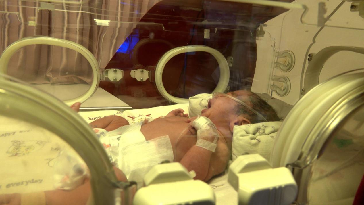 圖為震區(qū)降生的首個新生兒 圖片來源:日喀則市融媒體中心