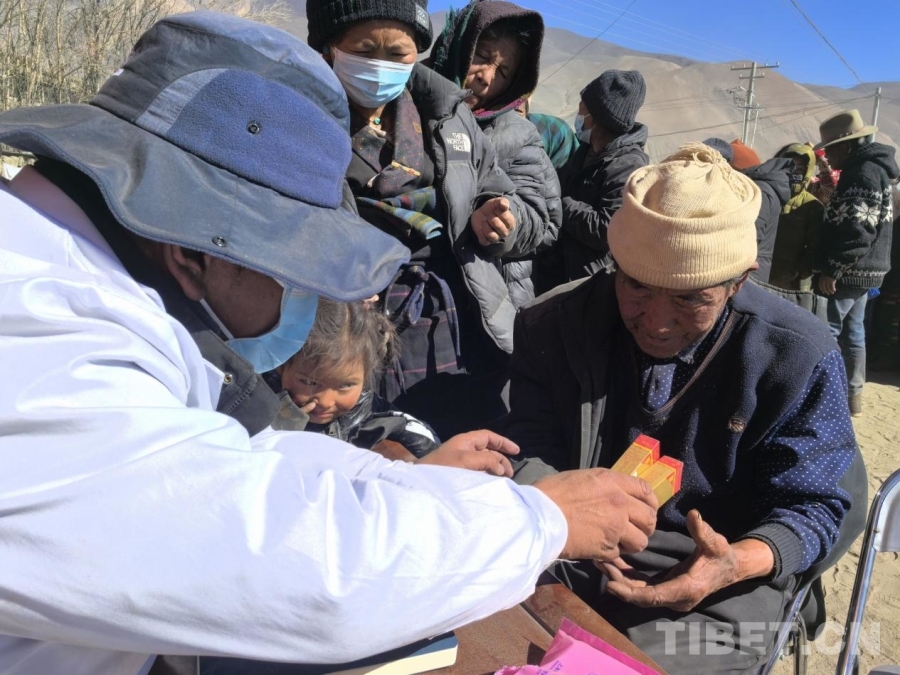 圖為赤列為受災(zāi)群眾發(fā)放免費(fèi)藥品 攝影:王淑