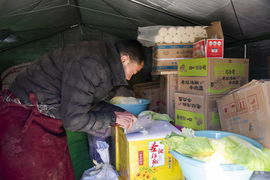 “輕傷的僧尼在我們縣醫(yī)院就診,重傷的僧尼我們第一時間就已轉(zhuǎn)運至日喀則市人民醫(yī)院,其余的僧尼我們于地震當(dāng)日就已搭建好帳篷統(tǒng)一在森嘎曲德寺旁的空地進行安置?!痹谑転?zāi)僧尼安置點,一間間活動板房整齊排列,僧尼們正在點柴燒水、切大白菜,為今日午餐做準(zhǔn)備。