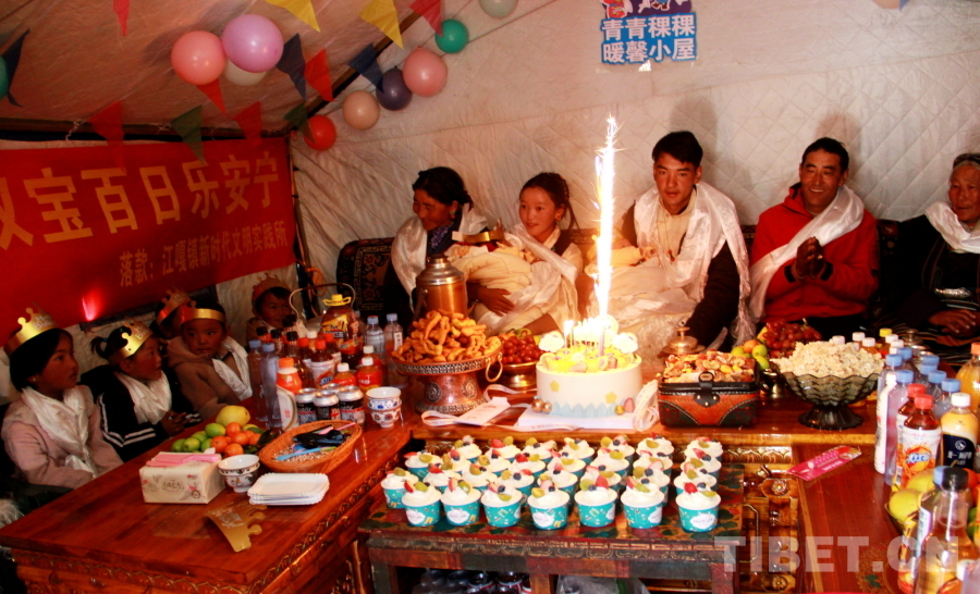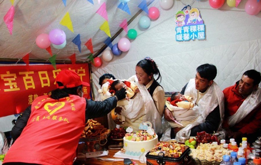 圖為在西藏自治區(qū)日喀則市定結(jié)縣江嘎鎮(zhèn)榮貢村舉辦的“情暖震后帳篷,共賀雙寶百日”活動(dòng) 攝影:劉莉