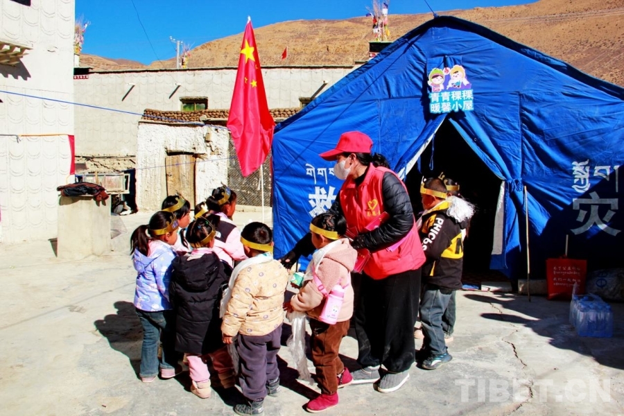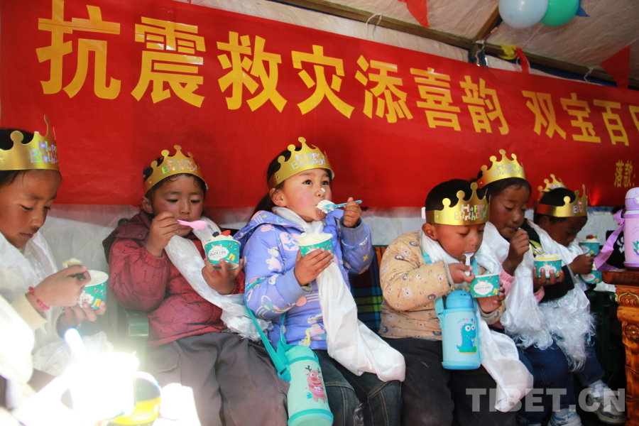 中國(guó)西藏網(wǎng)訊 午后,陽(yáng)光明媚,西藏自治區(qū)日喀則市定結(jié)縣江嘎鎮(zhèn)榮貢村村民旦增點(diǎn)旦家院子里的臨時(shí)帳篷里傳出陣陣孩子們歡樂的笑聲歌聲。1月18日,旦增點(diǎn)旦的雙胞胎寶寶迎來百天,溫馨的“情暖震后帳篷,共賀雙寶百日”活動(dòng)在這里舉辦。