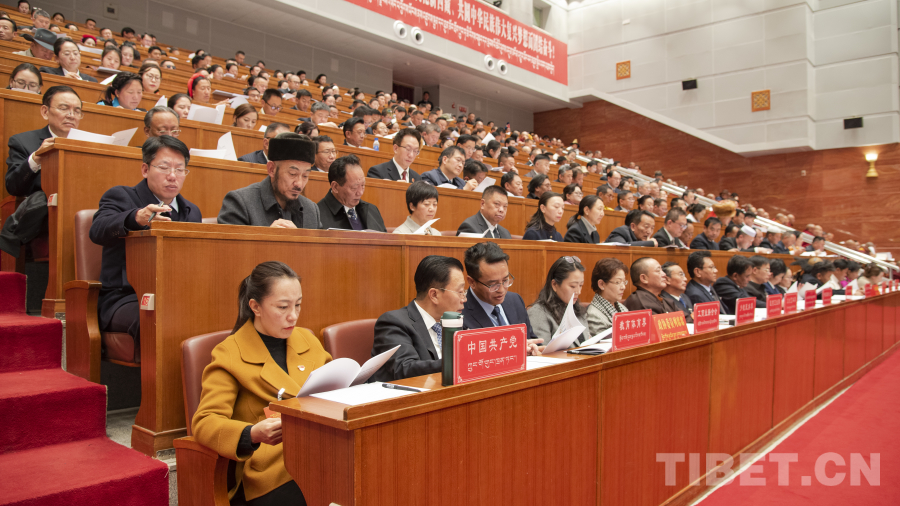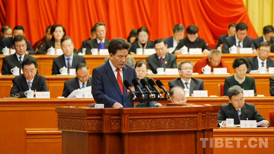 圖為洛桑江村受西藏自治區(qū)人大常委會委托作西藏自治區(qū)人民代表大會常務(wù)委員會工作報(bào)告 攝影:趙振宇